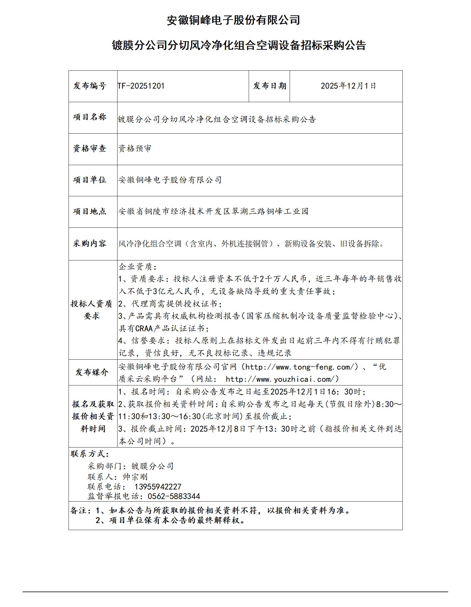 鍍膜分公司分切凈化空調(diào)設(shè)備采購(gòu)招標(biāo)公告_01