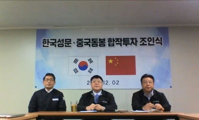12月2日上午,公司與韓國成門公司以視頻會議形式舉行合資合作簽約儀式,雙方投資設立合資公司,實施新能源汽車濾波用薄膜電容器項目。公司董事長黨委書記、董事長黃明強與韓國成門公司代表理事辛浚燮分別代表雙方簽署合資合作協(xié)議。公司總經(jīng)理鮑俊華、副總經(jīng)理、財務總監(jiān)郭傳紅、董事會秘書李駿,韓國成門公司理事辛承燮、金鐘洛等分別在各自會場參加簽約儀式。