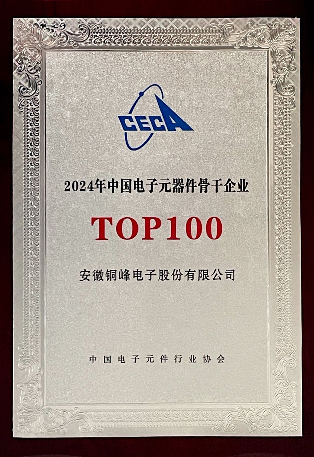 公司獲評2024年中國電子元器件骨干企業(yè)TOP100榮譽稱號