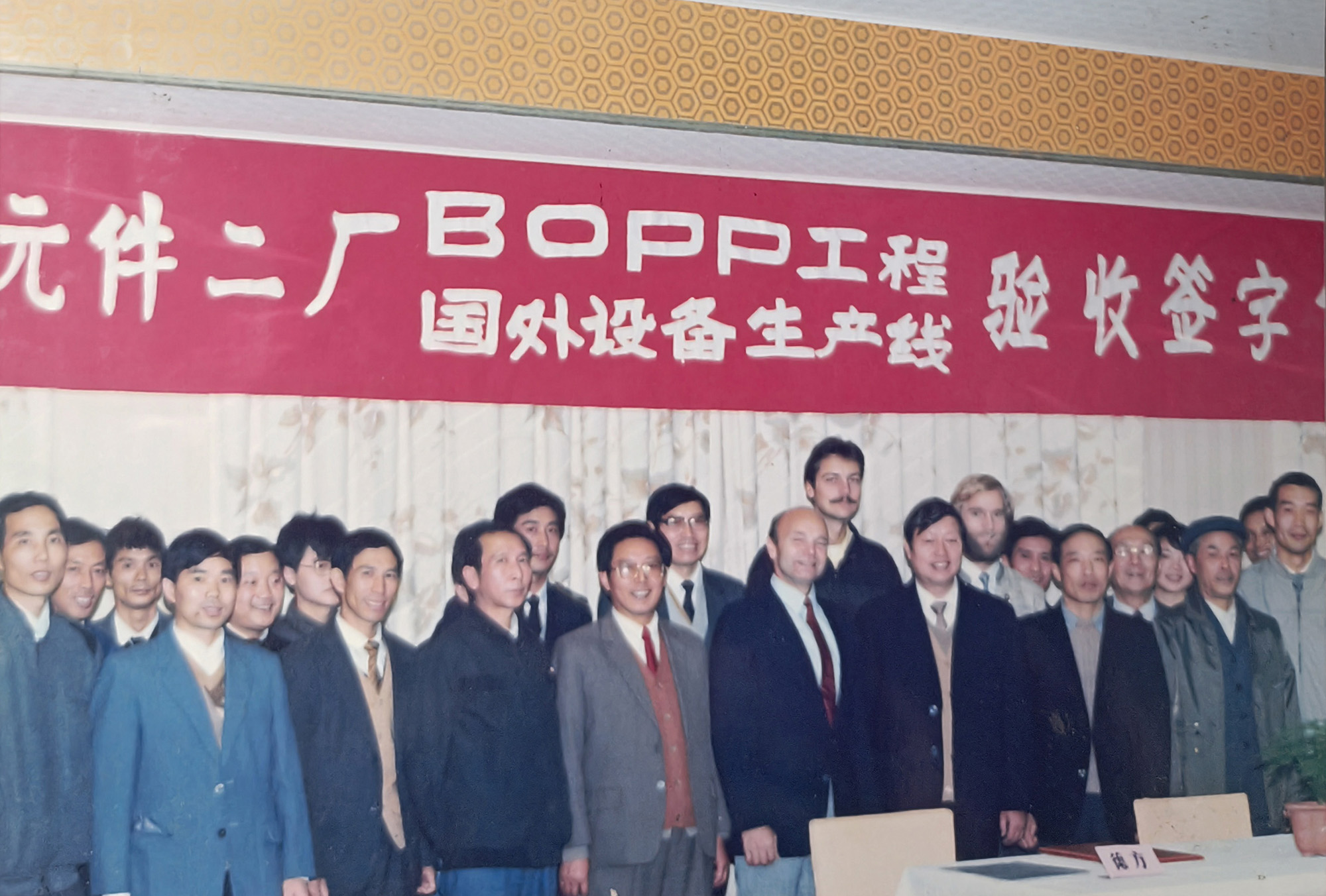 銅峰“老一線”于1989年建成投產(chǎn)。上世紀(jì)80年代,當(dāng)時(shí)國(guó)內(nèi)電容器用聚丙烯膜幾乎完全依賴進(jìn)口,嚴(yán)重制約了我國(guó)電容器等相關(guān)產(chǎn)業(yè)的發(fā)展。銅峰公司前身銅陵市無(wú)線電元件二廠積極響應(yīng)國(guó)家需求,決定從國(guó)外引進(jìn)雙向拉伸電容器用聚丙烯膜生產(chǎn)線。1985年項(xiàng)目啟動(dòng),經(jīng)過(guò)一系列籌備工作,1986年獲得國(guó)家計(jì)委批準(zhǔn)立項(xiàng),并被列入國(guó)家 “七五” 機(jī)械電子工業(yè)重點(diǎn)技改項(xiàng)目。1988年,主線和相關(guān)輔助設(shè)備成功引進(jìn)。經(jīng)過(guò)一年多的緊張建設(shè),1989年生產(chǎn)線正式投產(chǎn)。“老一線”的建成投產(chǎn),是銅峰發(fā)展史上具有重要意義的轉(zhuǎn)折點(diǎn)。該線加速了銅峰公司產(chǎn)品結(jié)構(gòu)調(diào)整和轉(zhuǎn)型步伐,并由此形成了全國(guó)唯一的“電工三膜”(電容薄膜、金屬化膜和薄膜電容器)一條龍的生產(chǎn)格局,使企業(yè)的經(jīng)濟(jì)規(guī)模和技術(shù)水平躍上一個(gè)新臺(tái)階。