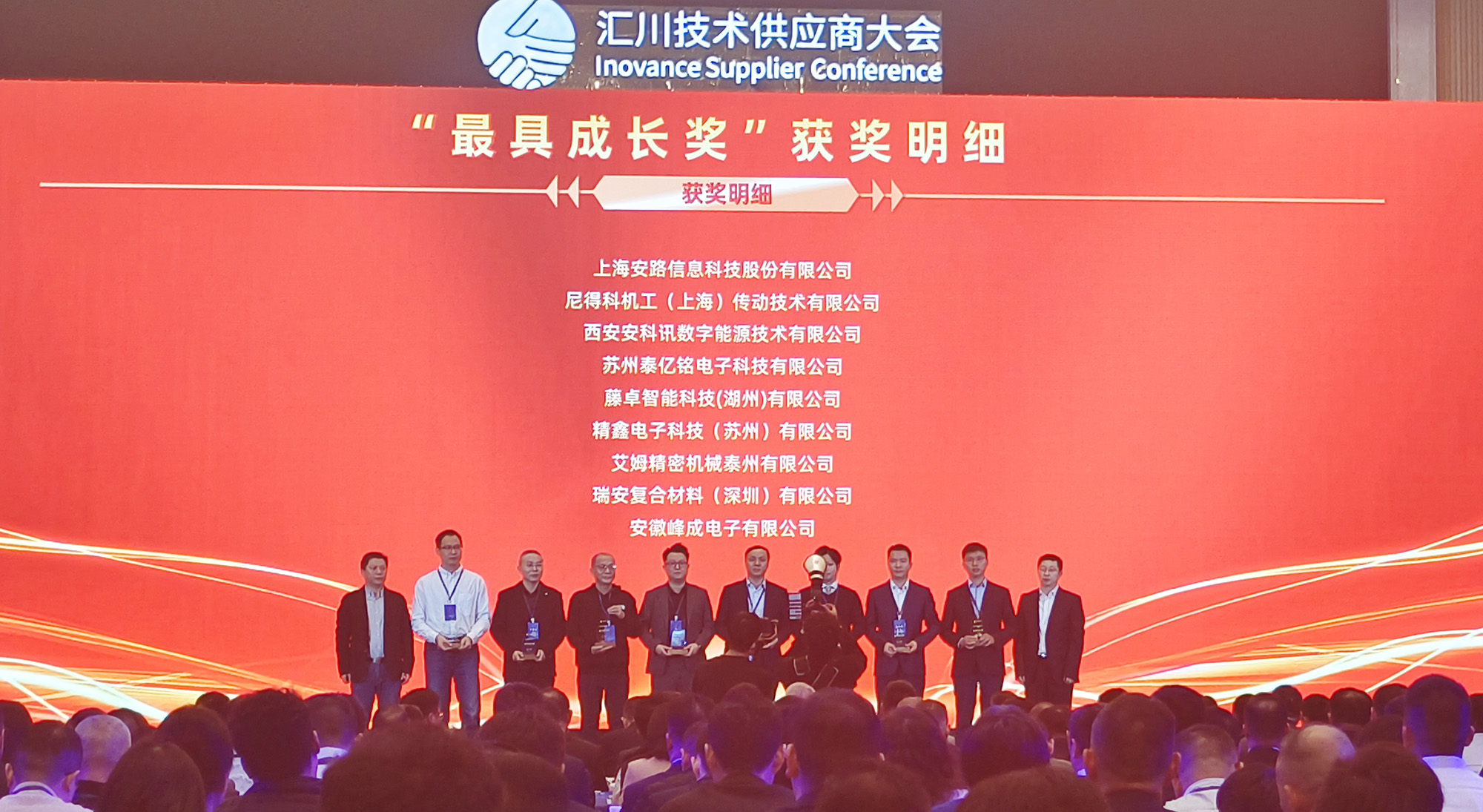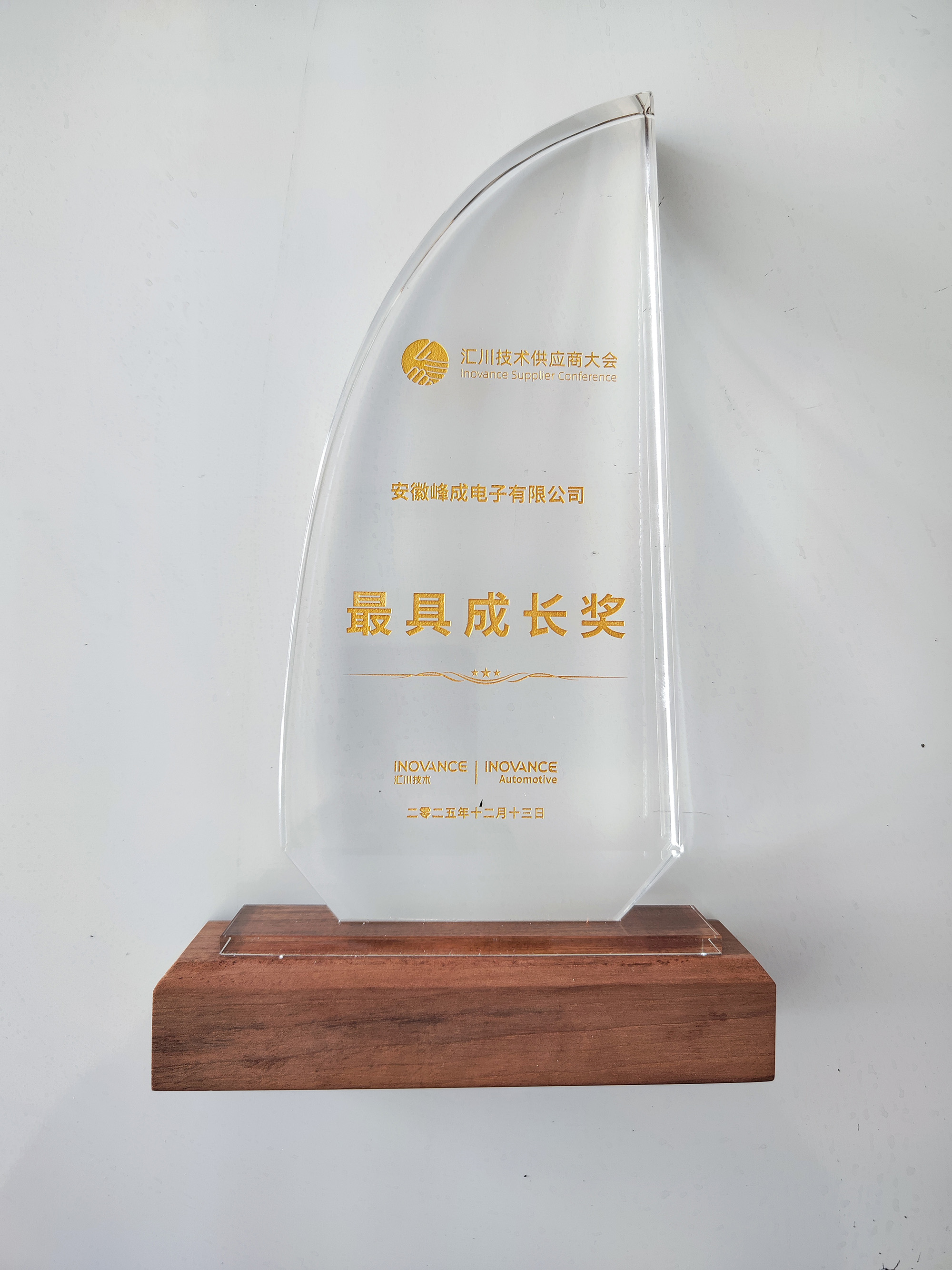 12月13日,以“數驅質領,聚勢全球,共創(chuàng)未來”為主題的匯川技術2025供應商大會在蘇州隆重舉行。峰成公司憑借在技術研發(fā)、產品品質、交付及合作發(fā)展中的亮眼表現,從眾多合作伙伴中脫穎而出,榮獲匯川技術頒發(fā)的供應商“最具成長獎”。